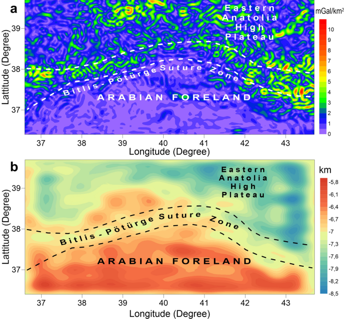 Determination Of Tectonic And Crustal Structure Of Bitlis Poturge Suture Zone Using Wgm2012 Complete Bouguer Anomaly Data Springerlink